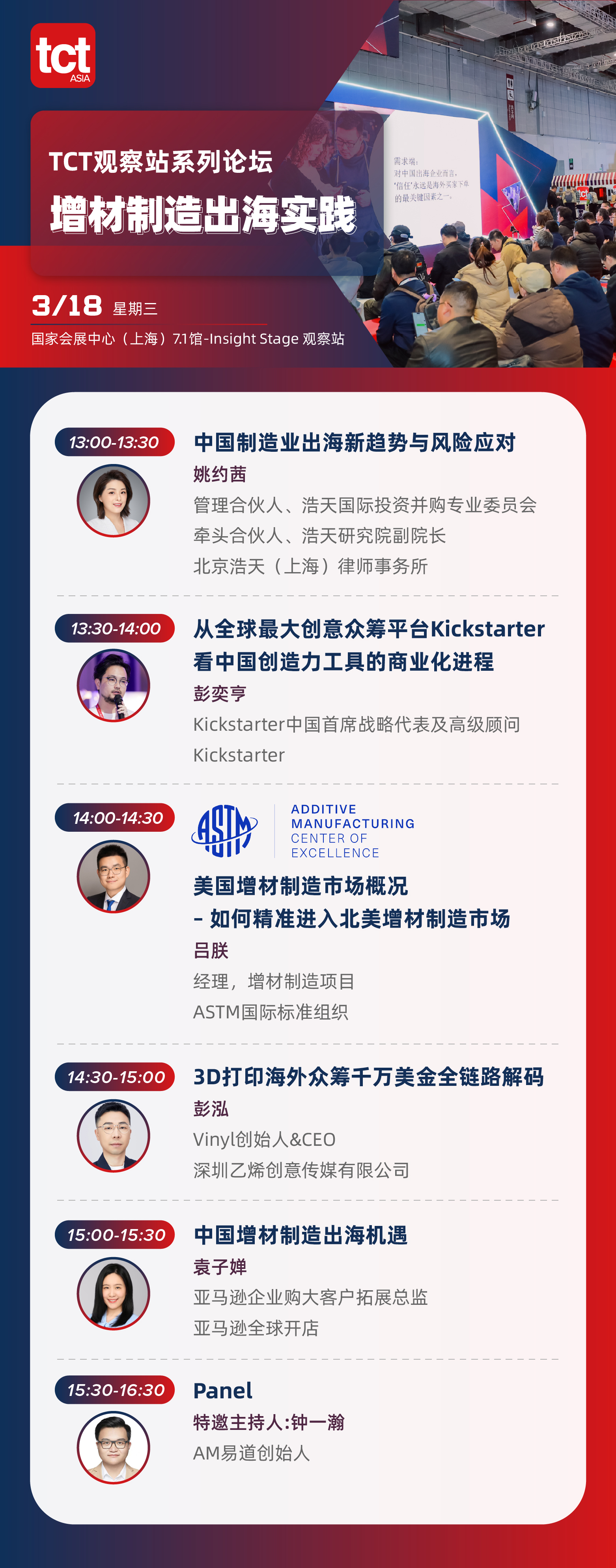 聚焦实际应用,并与展会现场展示的技术、设备相结合,打造全新的活动体验;提供专业、高度聚焦的会议、研讨会和其他专业内容,并营造交流互动的氛围;帮助设计师、工程师和买家评估、采纳和优化配置,以满足他们对于增材制造的真正需求。