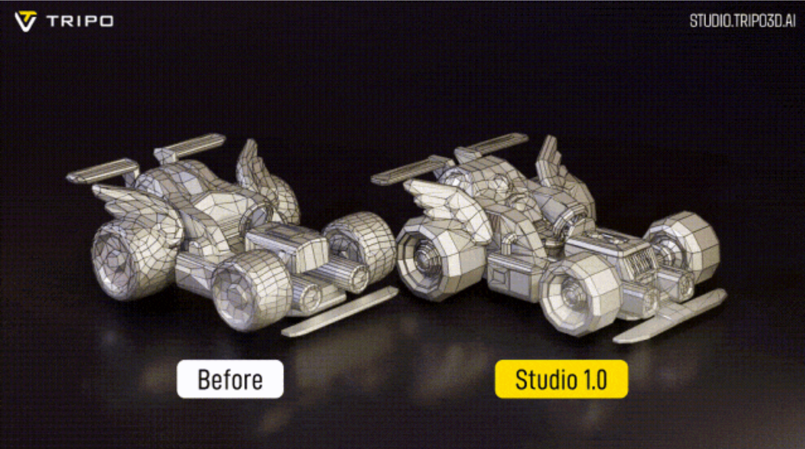 Tripo High-Poly 3.0基于升级版TripoSF 模型,实现双模式输出——就像雕刻师在粗刀与细刻之间自由切换,效率与极致保真不再对立。