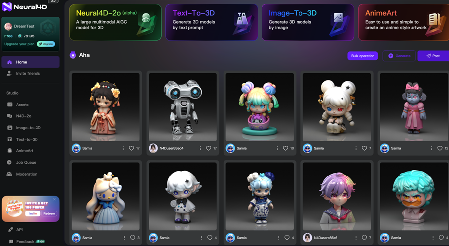 DreamTech以自研的Neural4D系列3D/4D AIGC大模型为技术底座,并基于该能力构建面向真实世界的应用平台,覆盖数字内容生成、工业级设计与实体制造等核心场景。