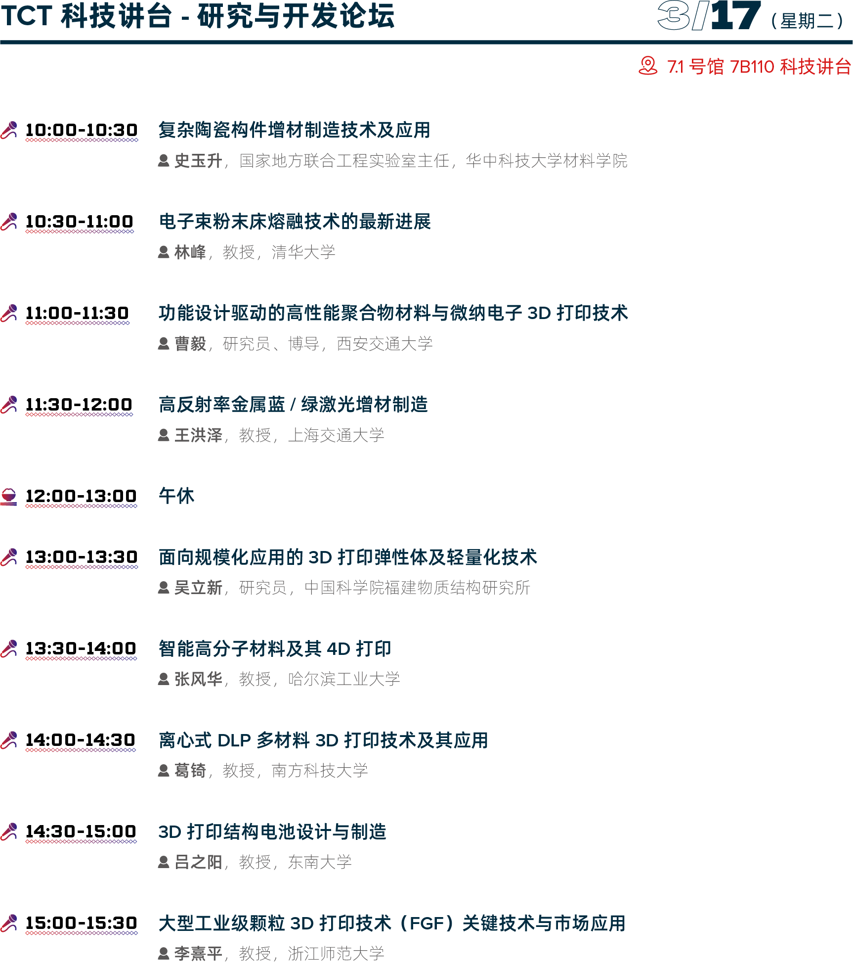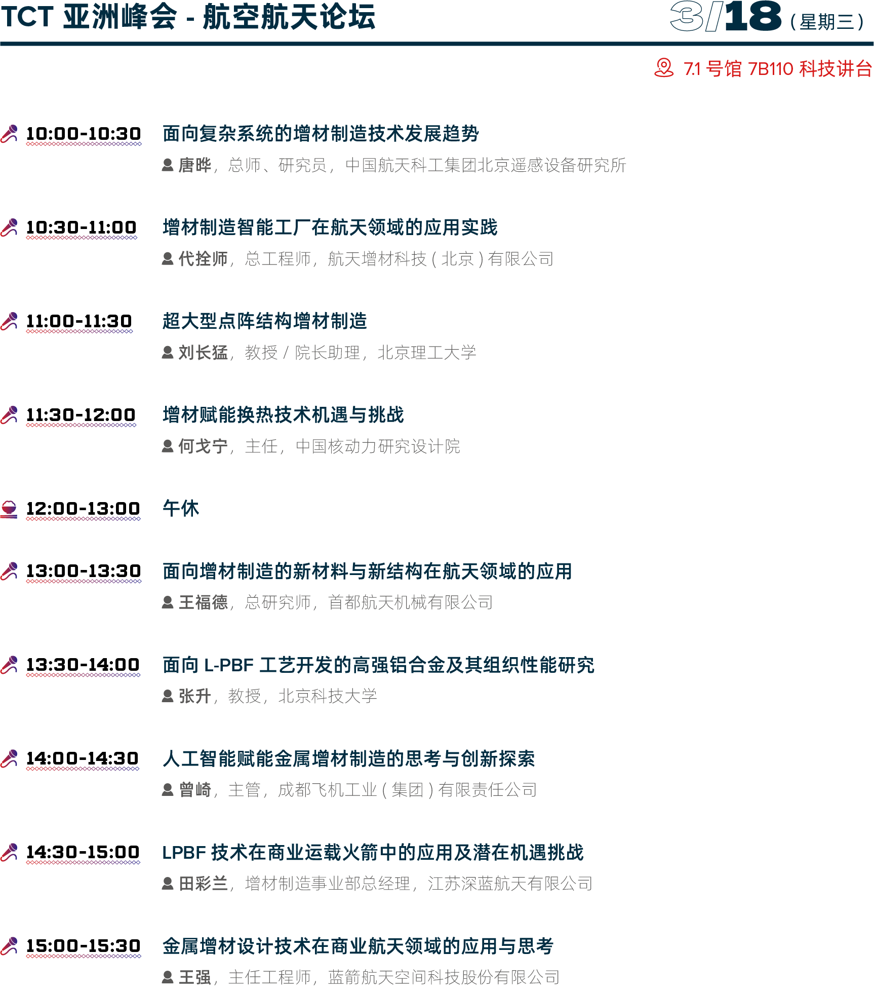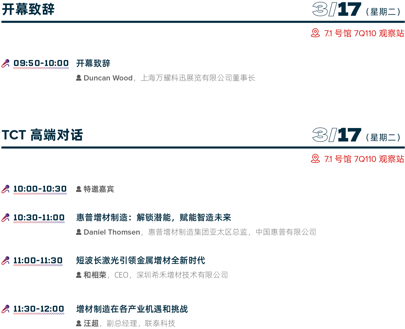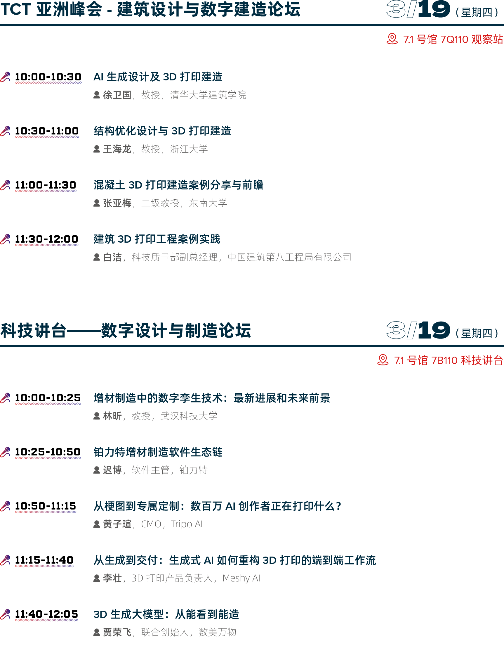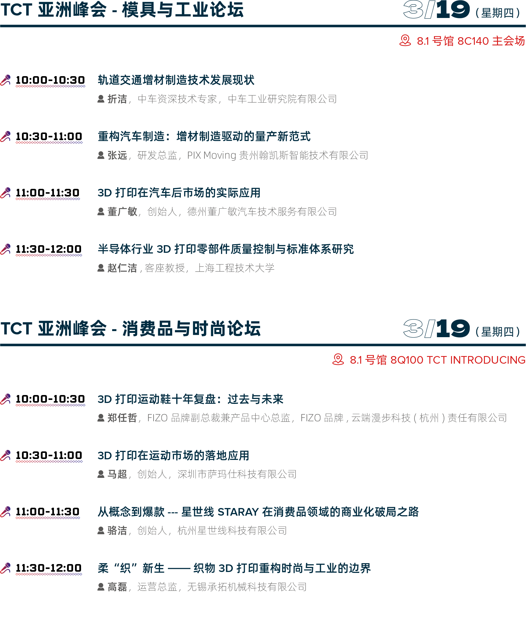 论坛区设置:主会场、科技讲台、TCT观察站、TCT INTRODUCING、二楼M801会议室、3D Genius Hub