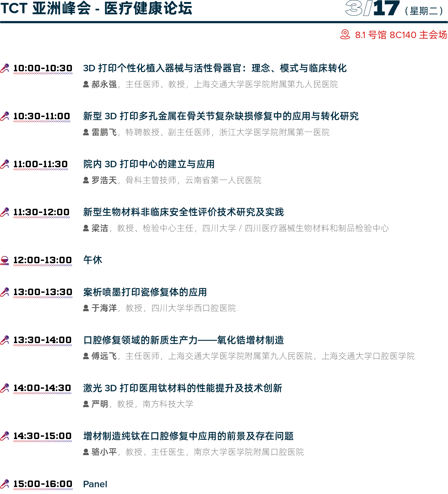 ASMT培训课程(3月16日)及TCT观察站系列论坛为收费场次;其余论坛活动凭参观证即可入场参会