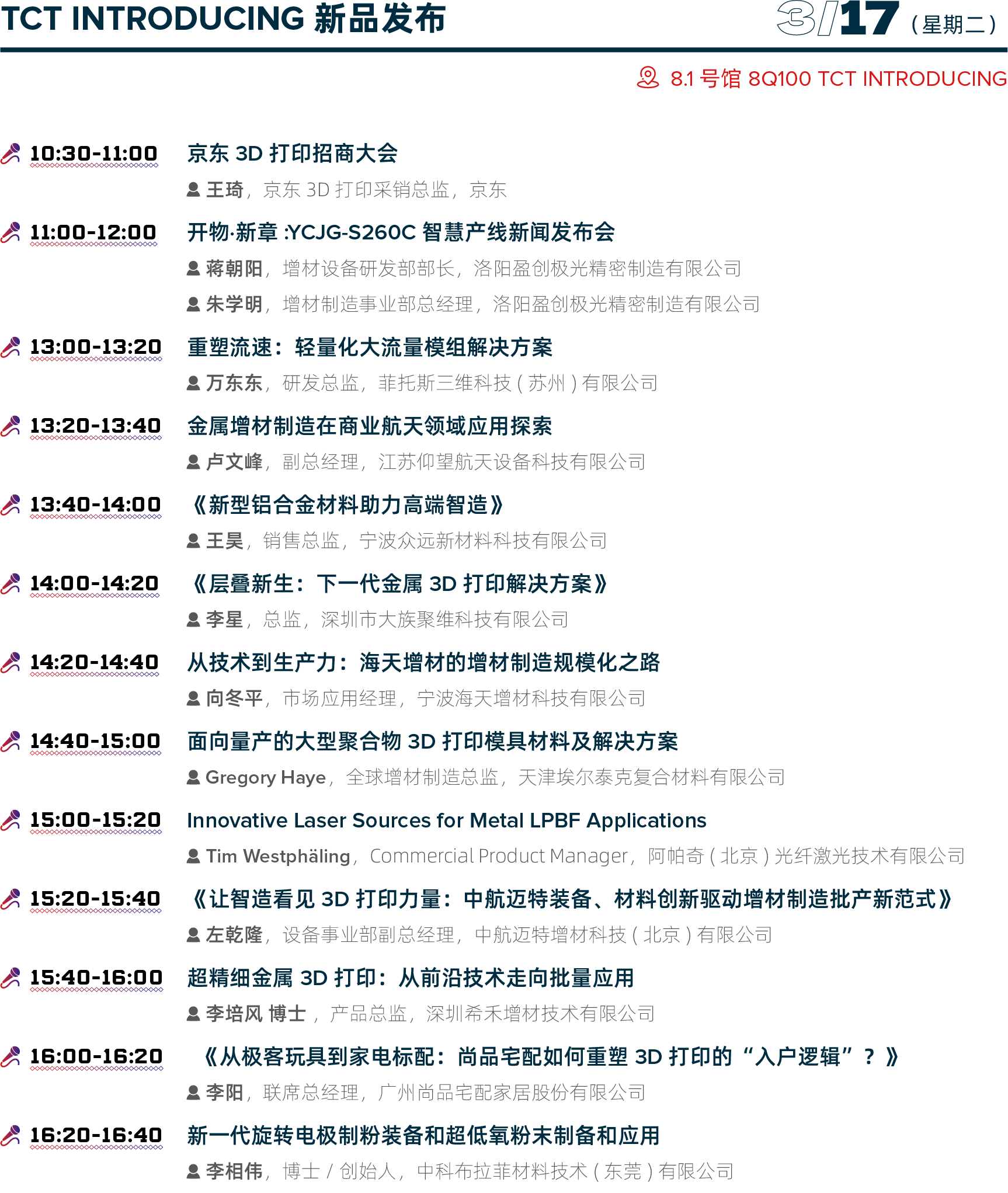 聚焦实际应用,并与展会现场展示的技术、设备相结合,打造全新的活动体验;提供专业、高度聚焦的会议、研讨会和其他专业内容,并营造交流互动的氛围;帮助设计师、工程师和买家评估、采纳和优化配置,以满足他们对于增材制造的真正需求。