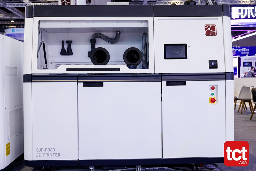 近年来,汉印持续加码3D打印业务,此次还展示了其基于选择性喷射熔融(Selective Jet Fusion, SJF)技术的SJF-P380系统。该系统与其配套的后处理及成型设备一同亮相,从整体架构到解决方案,都让人感到几分“似曾相识”。