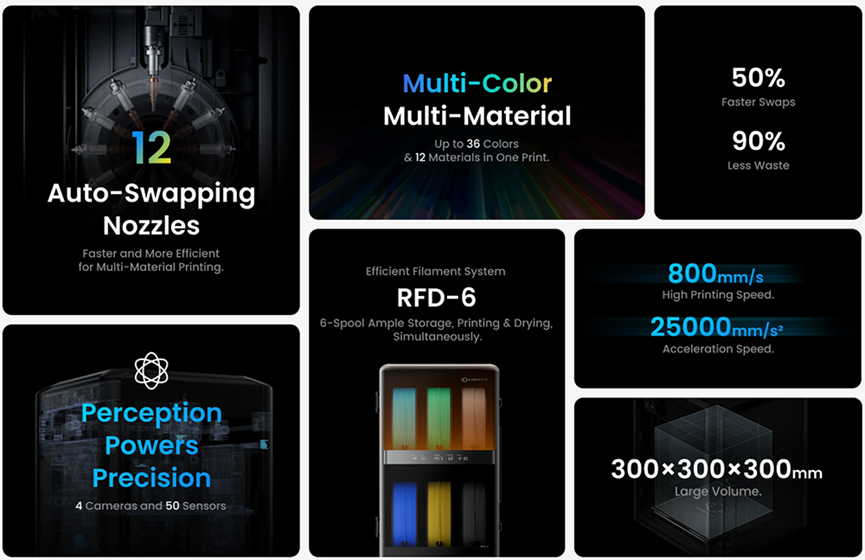 单次打印可实现36色、12种材料自由组合,为创作者带来更丰富的表达空间。