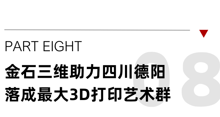 在四川德阳,一组引人注目的公共艺术装置落成。这组城市景观由金石三维(2026 TCT亚洲展:7Q15)完成,是目前该公司在中国建成的最大规模3D打印地标群。据了解,所有作品均使用其自主研发的FGF1800Pro大型3D打印机一体成型制造,从设计到打印再到现场安装,整个地标群的建设周期不到40天。这种极高的建造效率,让传统耗时数月的公共艺术项目得以在短时间内落地,展现了高效率与高精度的结合。