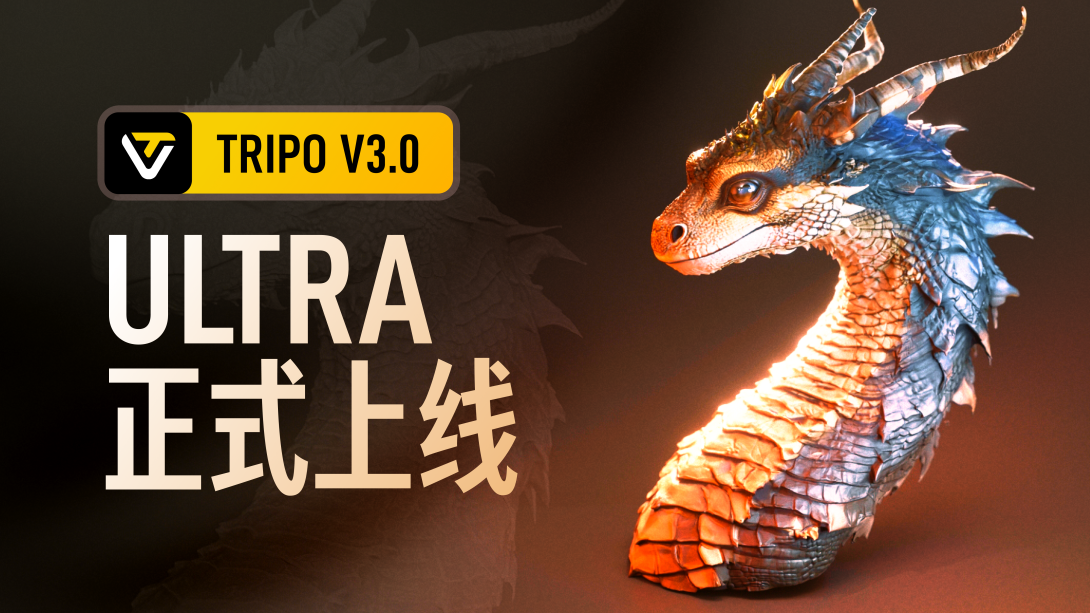 2025年8月Tripo 3.0正式发布,通过核心算法升级与功能模块优化,参数级别达到200亿,将几何清晰度与细节纹理质感都推向极限。集十亿体素级三维分辨率、任意拓扑结构和高效计算三大能力于一身,用户可轻松还原最复杂的细节与形态,让每一次生成都“毫发毕现”,从此3D生成迈入IMAX新时代。