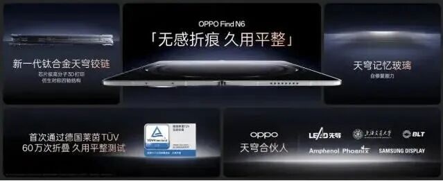 Find N6已获得德国莱茵TÜV认证,即使经过60万次折叠后仍能保持完全平整。