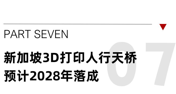 据了解,新加坡首座3D打印人行天桥预计将于2028年落成,横跨裕廊河连接两个新建住宅区。该项目由陆路交通管理局(LTA)牵头,并与南洋理工大学新加坡3D打印中心合作开展,旨在解决建筑业面临的劳动力短缺问题。这座桥梁预计长10米、宽5米,由10个模块组成。模块先进行3D打印再进行组装,每个模块打印耗时约4小时,可减少50%的人工成本。这些模块通过高强度钢缆相互连接。