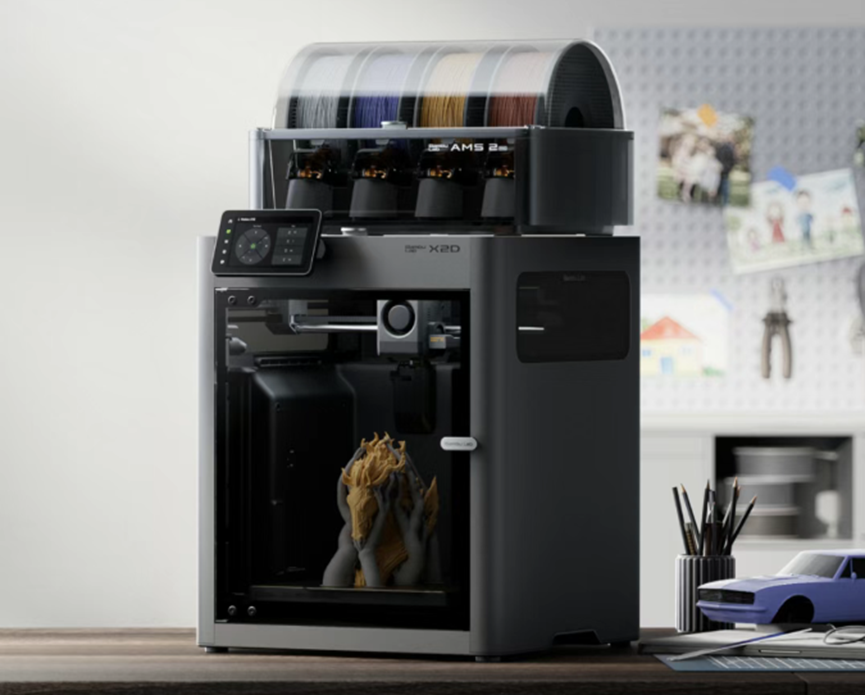 近日,拓竹发布了双喷头双喷嘴3D打印机X2D。该打印机是X1C升级款,主打双头双喷嘴、多色高速、智能AI检测的桌面级FDM 3D打印机,定位家用与专业创作兼顾。